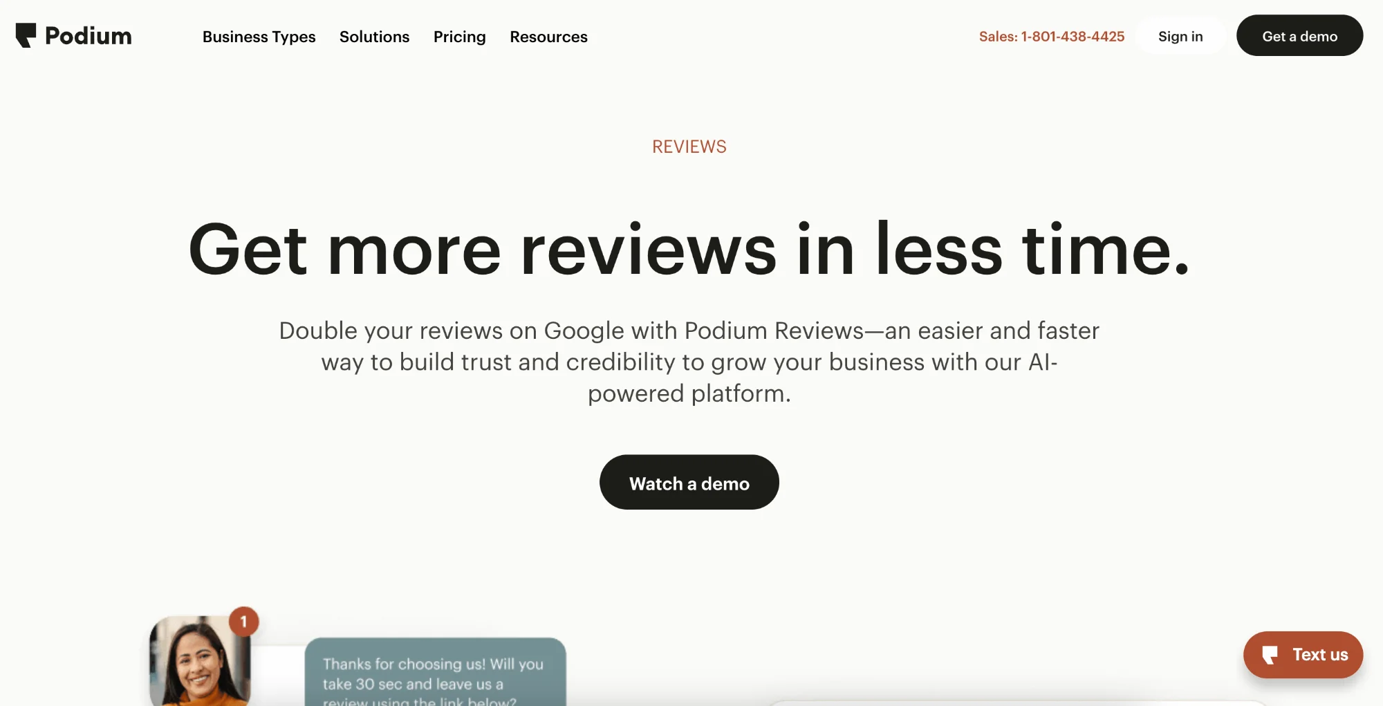 Choose Podium if your customers prefer texting and you want unified communication beyond reviews. Ideal for local service businesses where immediate post-service follow-up matters.
